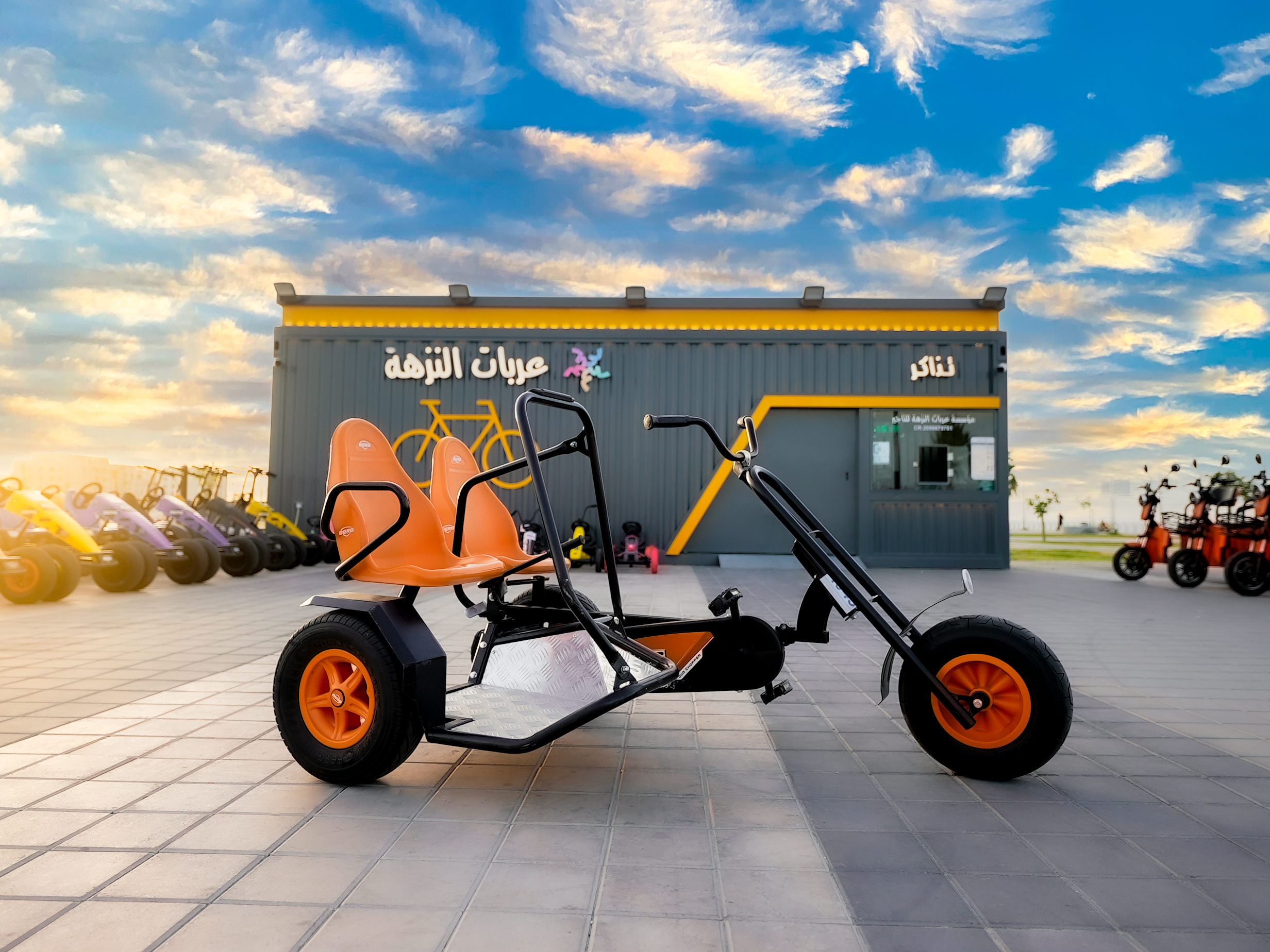 عربات ترفيهية متنوعة تناسب جميع الفئات العمرية، من الأطفال ابتداءً من عمر سنتين وحتى الكبار +50 سنة. تتميز بتصاميم جذابة وألوان متعددة، وتتوفر بأحجام مختلفة تشمل الفردية، الثنائية، والرباعية، كما أنها صديقة للبيئة وتعمل بالطاقة البشرية عبر البدالات، لتمنح تجربة ممتعة وآمنة للجميع.