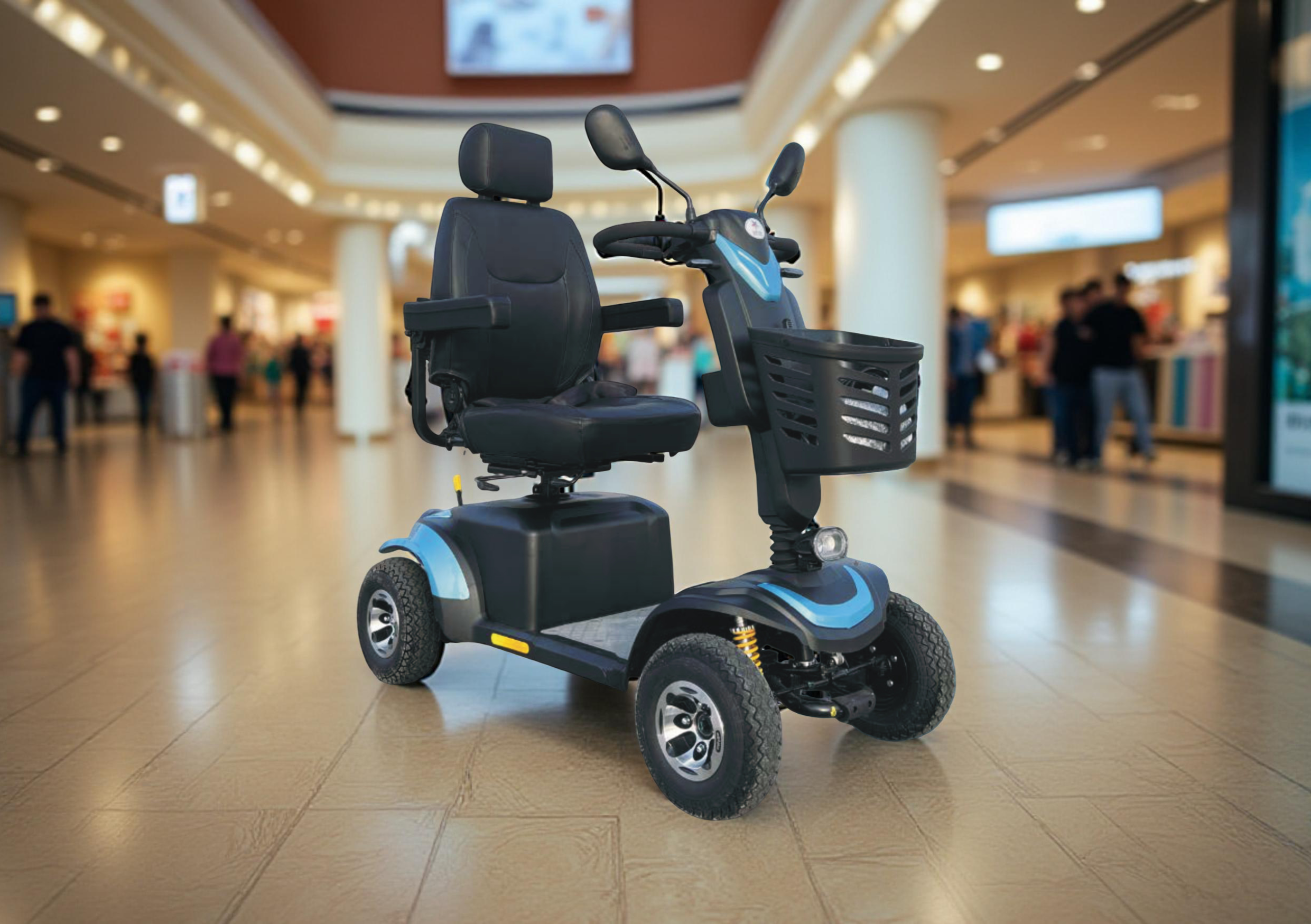 هي وسيلة رائعة لمساعدة كبار السن واصحاب الهمم على التنقل بسهولة وراحة اثناء التسوق في الأسواق والمجمعات التجارية، وأيضا للترفية في المنتجعات والمنتزهات والواجهات البحرية